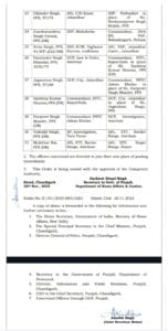 आईपीएस स्वपन शर्मा जालंधर पुलिस कमिश्नर और गुरप्रीत सिंह भुल्लर अमृतसर के पुलिस कमिश्नर के तौर पर कार्यभार देखेंगे। बीते दिनों ही लुधियाना के पुलिस कमिश्नर मंदीप सिंह संधू शहीद करतार सिंह सराभा के बलिदान दिवस के दौरान लुधियाना में रखे एक कार्यक्रम में पंजाबी सिंगर के मंच पर भंगड़ा डालते दिखाई दिए थे और तब से चर्चा में भी आए थे। जिसे लेकर भाजपा नेता गुरदेव शर्मा देबी की ओर से पुलिस कमिश्नर की निंदा भी की गई थी।